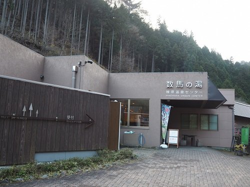 機械を使った薪作りの後は、斧を使ったマンパワーによる薪作りに挑戦しました。 実は、前半のグループが柔らかい杉を使ってしまったそうで、後半の私達のグループは堅い檜を使う事になりなかなか時代劇のワンシーンの様に「パコーン!」と真っ二つにはいきませんでした…。 堅い木でも、キツツキの様に斧を当てた同じ場所を何度も打っているといずれは割れるのですが、「パコーン!」と一撃で割りたかったですね、やはり(笑)。 昔はこうしてマンパワーのみで薪作りを行ったのですから、相当な重労働だったのだろうと身をもって知る事となりました。息子も形だけですが斧を丸太に当てる体験をさせて頂きました。(ハラハラしましたけど…) こうして作り出された薪は、パレットと呼ばれる入れ物に綺麗に並べて、乾燥させて水分を除いてから燃料として利用できるようになります。 プログラム参加者全員が薪作り体験を終えたところで、薪を燃料にして湯を沸かしている“檜原温泉センター数馬の湯(略称:数馬の湯)”へ移動しました。