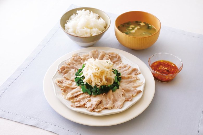 ニラ×豚肉×酢もやしで抜群の疲労回復効果豚バラのレンチン蒸し