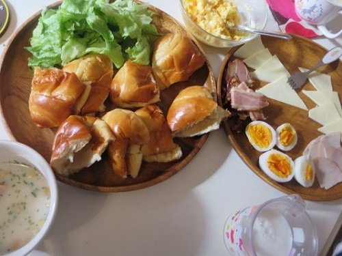 子どもがいる家庭では正直ご飯の仕度はバタバタしてしまいますよね。短い時間で準備ができればそれに越したことはありません。 ナンサンドのいいところは、「切るだけ・洗うだけ・茹でるだけ」のところ。包丁はほとんど使いません。材料さえ揃えておけば朝ごはんの支度をしながらでも、ランチの準備ができてしまいます! おもてなしの場合でも、前の晩からの準備は不要です♪ 我が家のナンサンドの具材は、いつもオーソドックスにゆで卵サラダ・ハムチーズレタス。冷蔵庫にきゅうりやトマトがあれば切って入れています。 下準備はレタスを一口サイズにちぎって洗って水気をきっておくこと。卵を茹でてゆで卵を作っておくこと。以上!他にすることは何もありません。