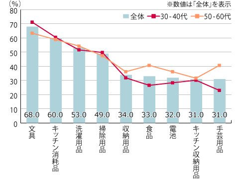 調査手法:「100円ショップ」に関して定性(文章)回答を中心としたアンケート「DOれぽ!+(プラス)」を実施。回答者の内訳は、ドゥ・ハウスがネットワークする首都圏在住の既婚女性30代~60代の主婦マーケター「DOさん」30名および、インターネットモニター会員「きかせて.net」会員70名。