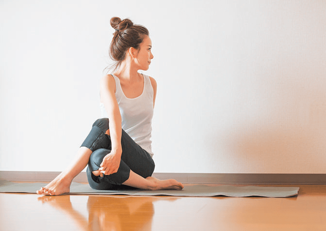 週に一度は子どもを実家にあずけてホットヨガへ。「おかげで産後も体型をキープできています。実は腹筋も割れているんですよ、私」