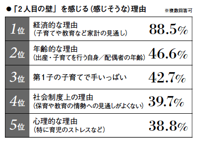 「2人目の壁」その原因は「経済的理由」がダントツ!