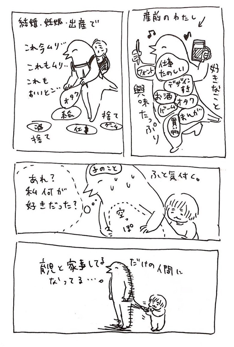 ママたちのあいだで話題になった「育児していると個性が死にがち」というマンガがこちら。今回は特別に掲載をさせていただきました。