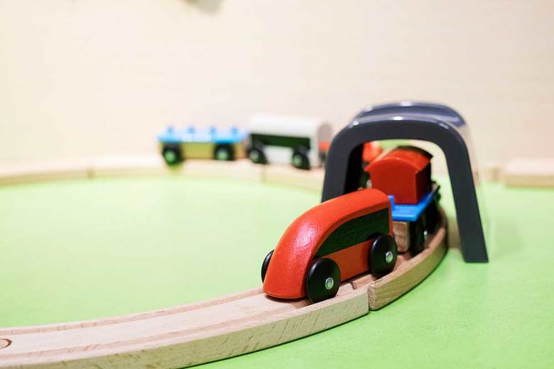 男の子のおもちゃで人気の列車セット。木製なのに、この価格とはうれしい!