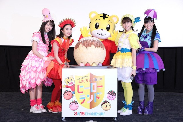 3月15日より公開となる映画しまじろう『しまじろうとうるるのヒーローランド』の完成披露舞台挨拶が3月12日に開催され、主題歌「HERO」を担当する「ももくろちゃんZ(百田夏菜子さん、玉井詩織さん、佐々木彩夏さん、高城れにさん)」が登場! しまじろう、みみりん、とりっぴぃ、にゃっきい、そして、会場の子どもたちと一緒に歌ったり、ダンスをしたり楽しい時間を過ごしていました。