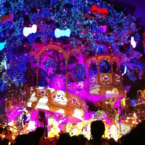 ⑤ミラクリュージョン★Happiness プロジェクションマッピングでのショーは圧巻です。 キティとお揃いのライトを振って一緒に体感する事ができます。