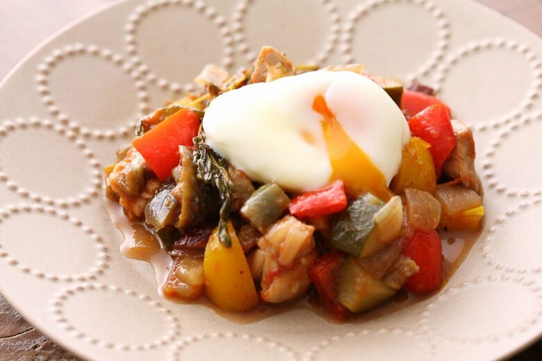 田頭さんおすすめは、ラタトゥイユの温玉のっけ。トマトベースのさっぱりしたラタトゥイユに温玉の濃厚さが加わり、リッチなひと品に仕上がりました。