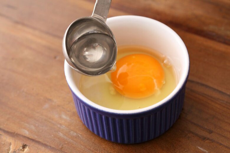 →水の量が多過ぎると加熱時間が長くなり、白身がとろっと固まる前に黄身が固まりすぎてしまうので注意しましょう。