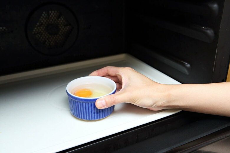 →500Wで一気に80秒加熱してしまうと火が入りすぎてしまうので、50秒加熱した後は、10秒ずつ電子レンジにかけましょう。気温や卵の大きさによってベストな加熱時間は変わってきますので、様子を見ながら調整してみてください。