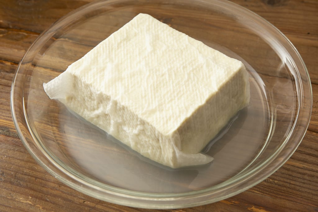 豆腐はキッチンペーパーで包み、耐熱容器に入れる。ラップをしないで電子レンジ600Wで2〜3分加熱する。そのまま5分ほどおいて出てきた水分を捨て、1.5〜2cm角に切る。