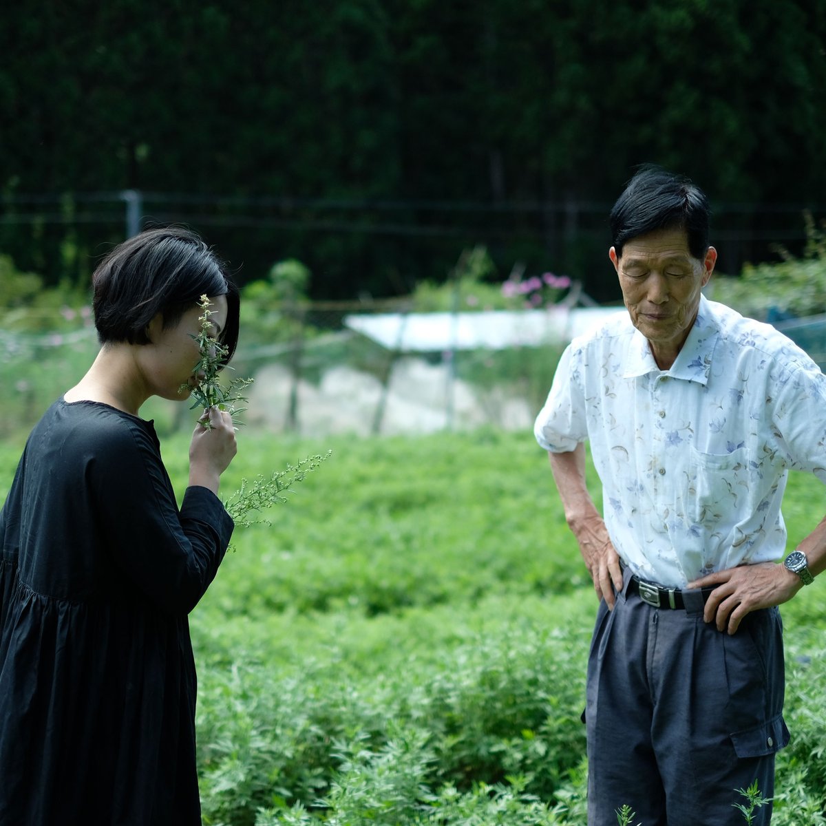 よもぎの生産者さんと話す松本さん