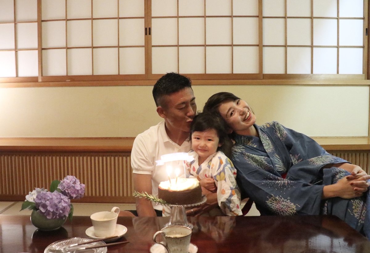 村上さんと夫の都倉賢さん、お子さんの3ショット