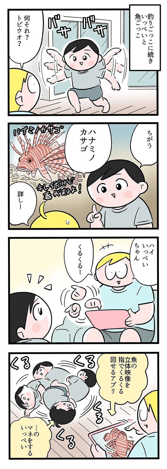 「魚かかった!」…も非情な結果を迎える息子との釣りごっこ【ノーテンキ家族#832】