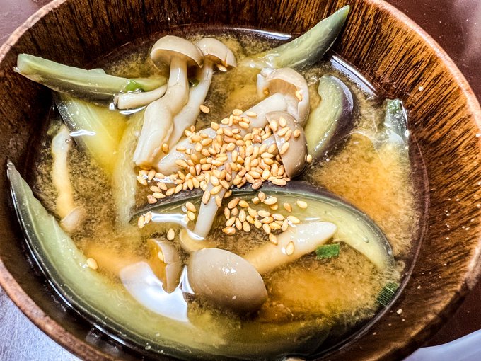 疲れが吹き飛ぶ!ナスとぶなしめじのお味噌汁。