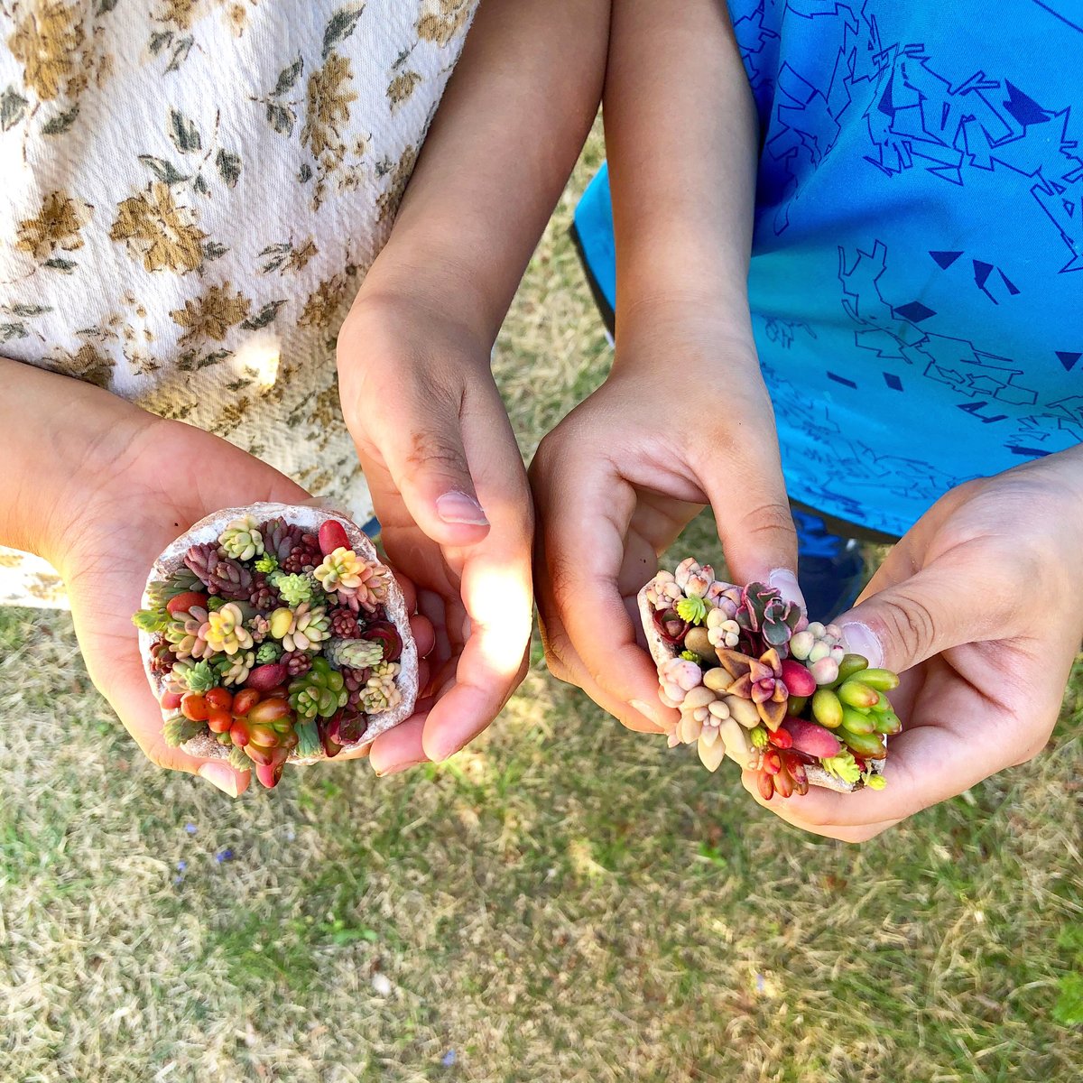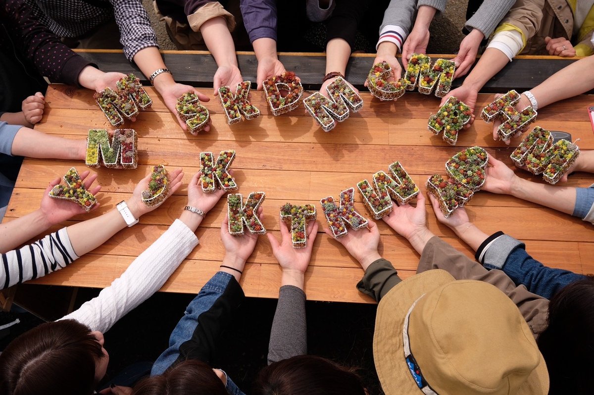 ワークショップ後にみんなで作品を撮影。「同じ材料を使っても、慎重にすき間を埋めていく人もいれば、さくさく仕上げる人もいて、作品に個性が出るのがおもしろい」とMAiさん(写真提供:MAiさん)
