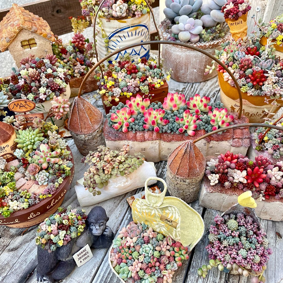 MAiさんが自宅で育てている寄せ植えたち。「容器選びも楽しいですよ」とMAiさん(写真:MAiさんのInstagramより)