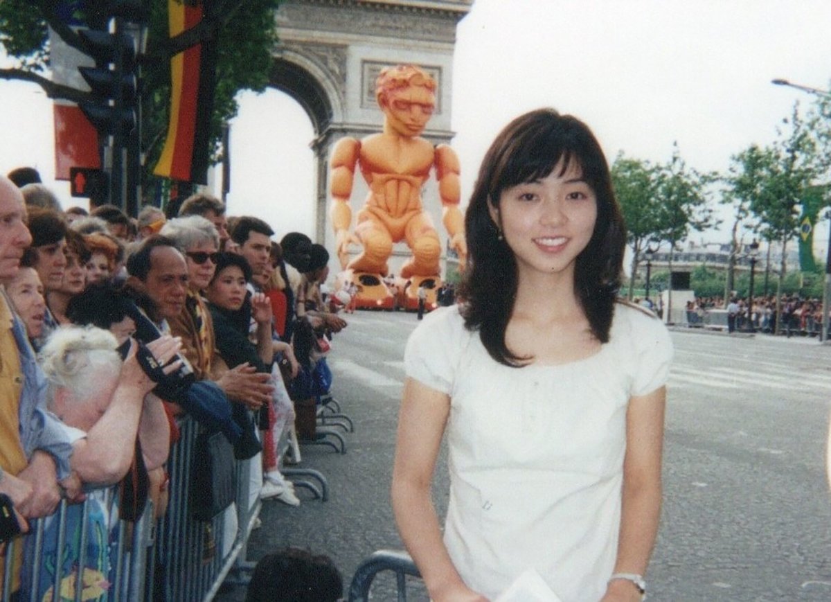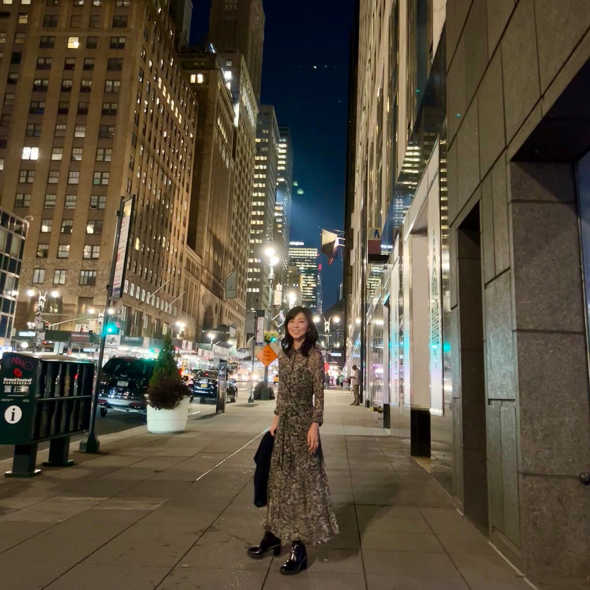 ニューヨークの街角でリラックスした表情の久保さん。Tシャツ姿が若々しい!