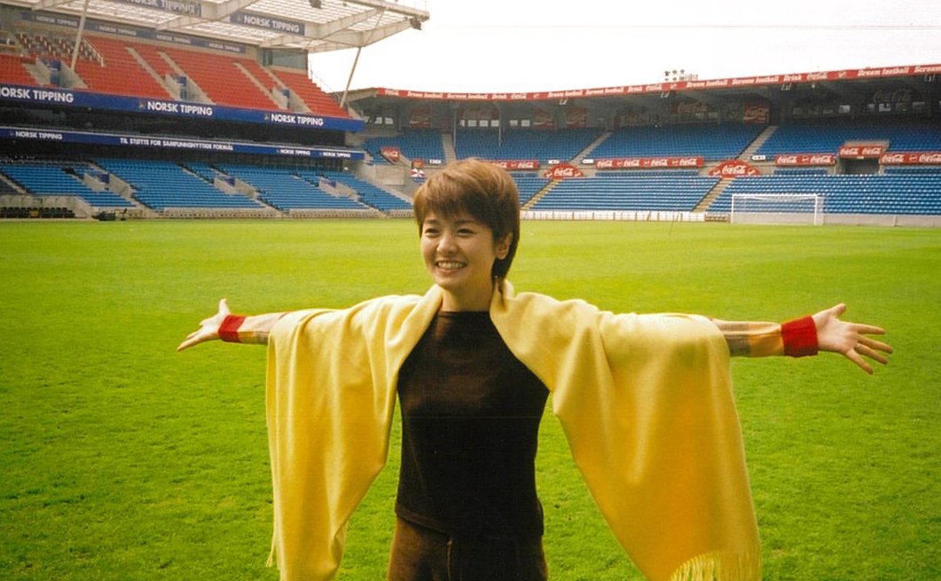 ドイツワールドカップの直前、ノルウェー遠征の取材をする西山アナ
