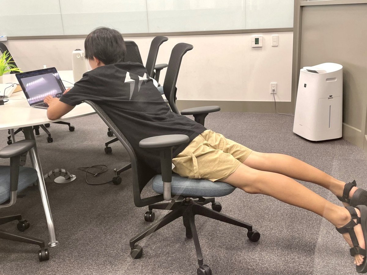 会社で仕事をする様子の松丸さんをスタッフが撮影したもの。SNSで公開されると素の部分が出ていると注目を集めた。松丸さんのTwitterより