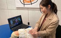 赤ちゃんの人形を使ってオンラインで相談に乗る岸畑聖月さん