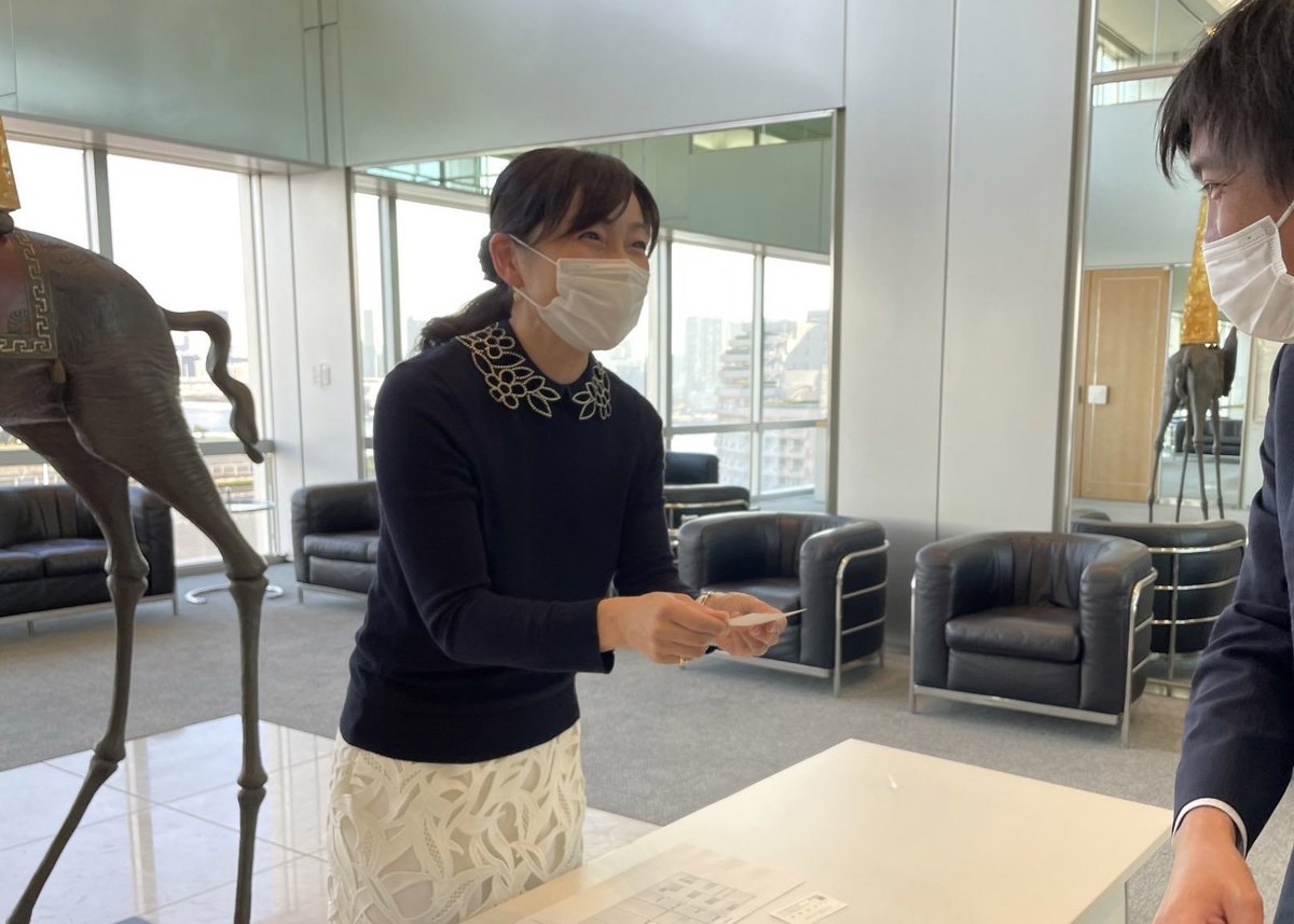 会見に訪れた記者の受付をするのも広報業務のひとつ
