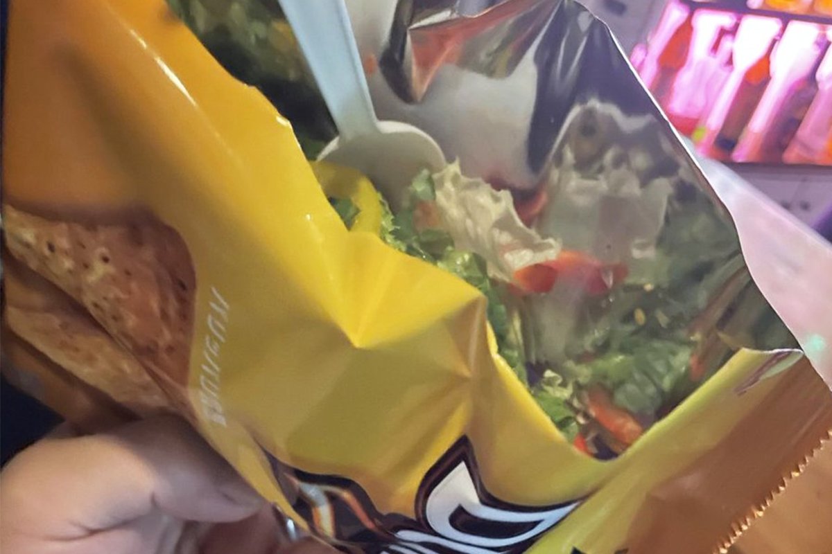 黄色いパッケージの「ナチョ・チーズ味」にカレーを入れてサラダをオンするのもおすすめ