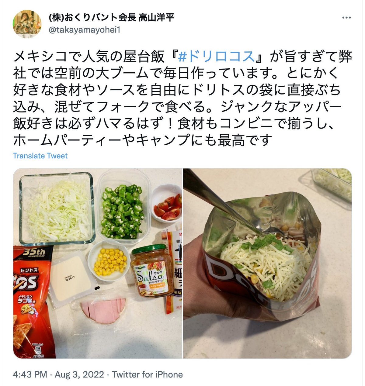 「アッパー飯好きはハマる」スナックを使った絶品メキシコ屋台飯に4万いいね