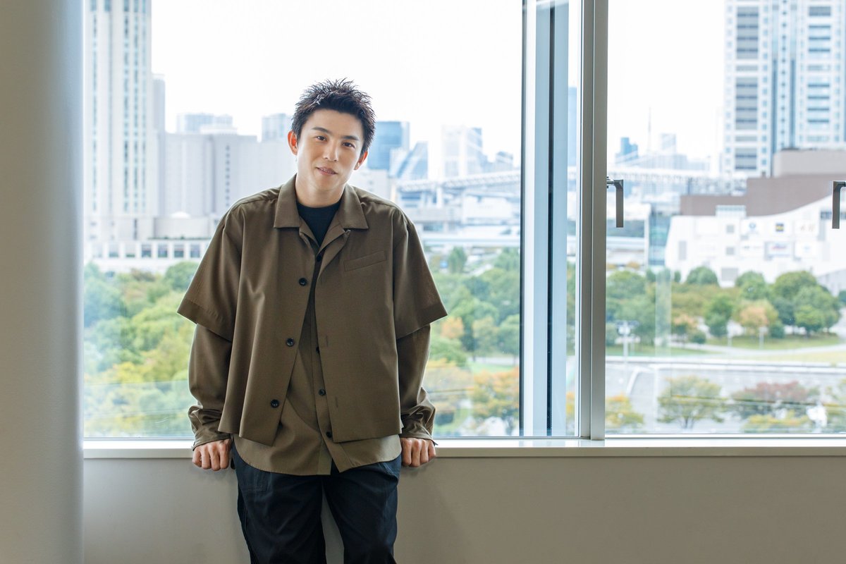 身ごろや袖がレイヤードの凝ったジャケットもサラッと着こなしているのはさすが
