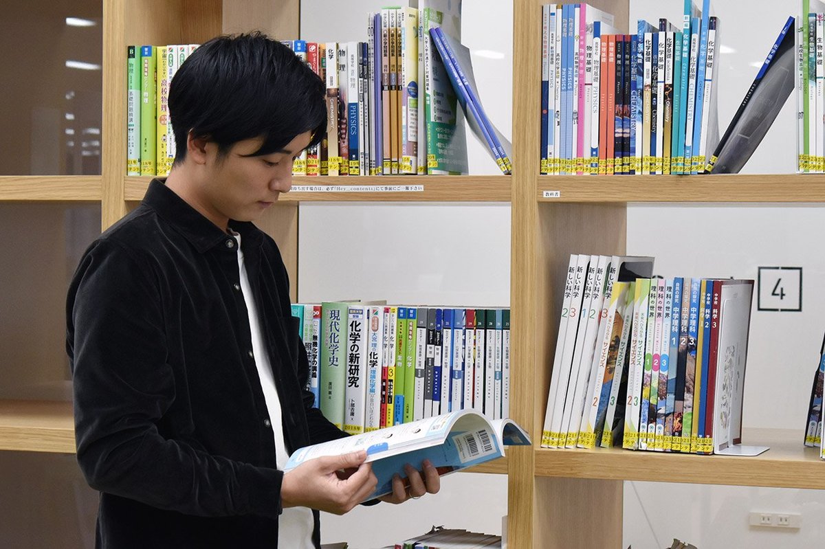 転職先はAIを使った学習システムを提供する企業で、職場には教材が多数並ぶ