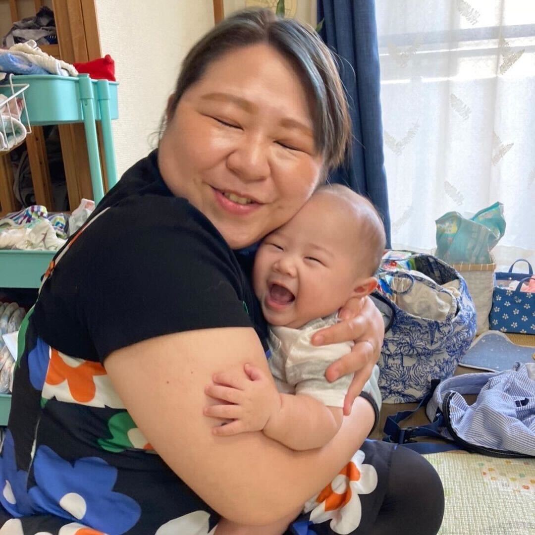 長男の「やさまる」くんと、はちきれんばかりの笑顔のやしろ優さん。お仕事も育児もポジティブに楽しむ姿が素敵です(本人提供)