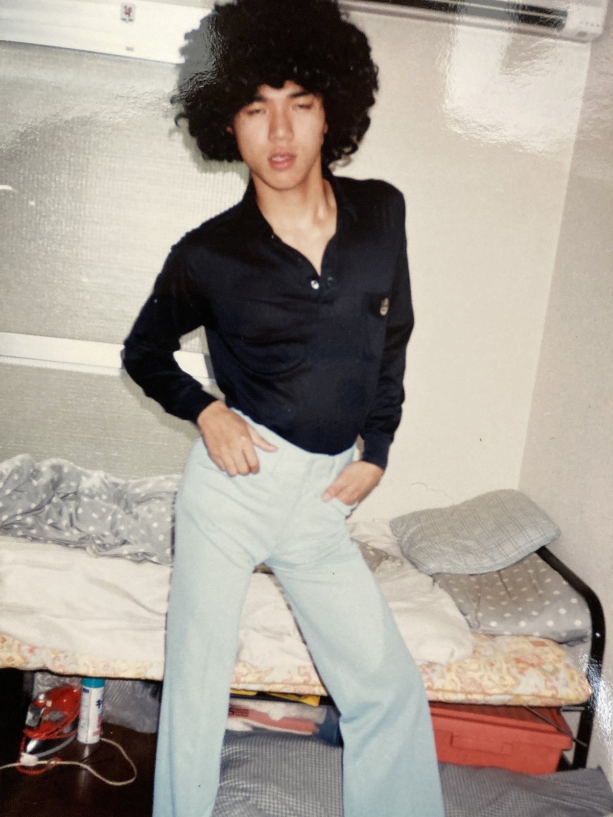雰囲気が懐かしい!アフロヘアでポーズを決める若かりし頃の清水さん