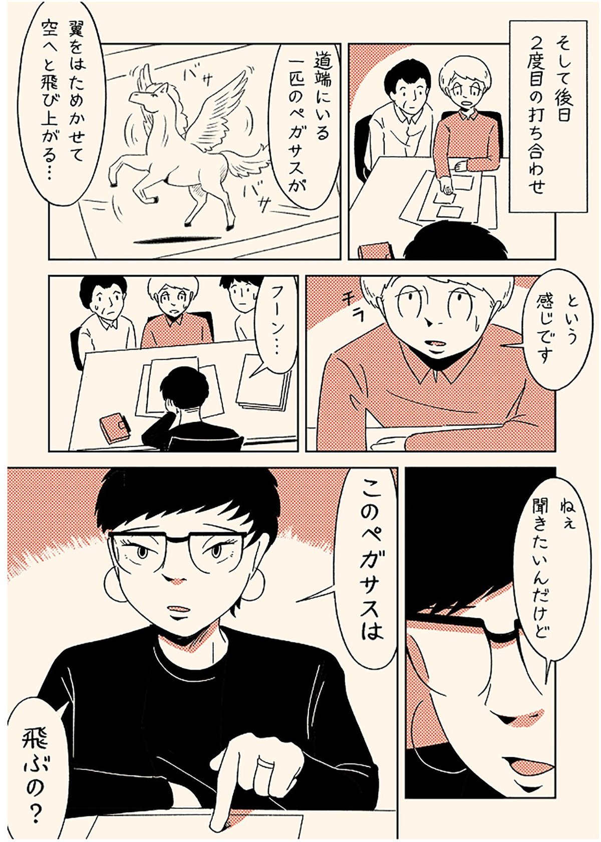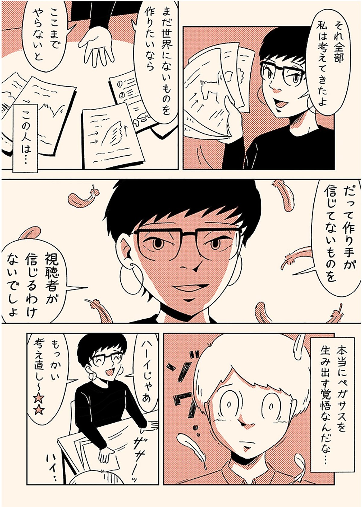 空想の動物のリアルさをとことん追求する先輩の仕事ぶりに主人公は影響を受ける