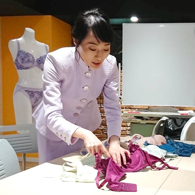 情報リサーチで下着メーカーの展示会に行った際の湯浅さん