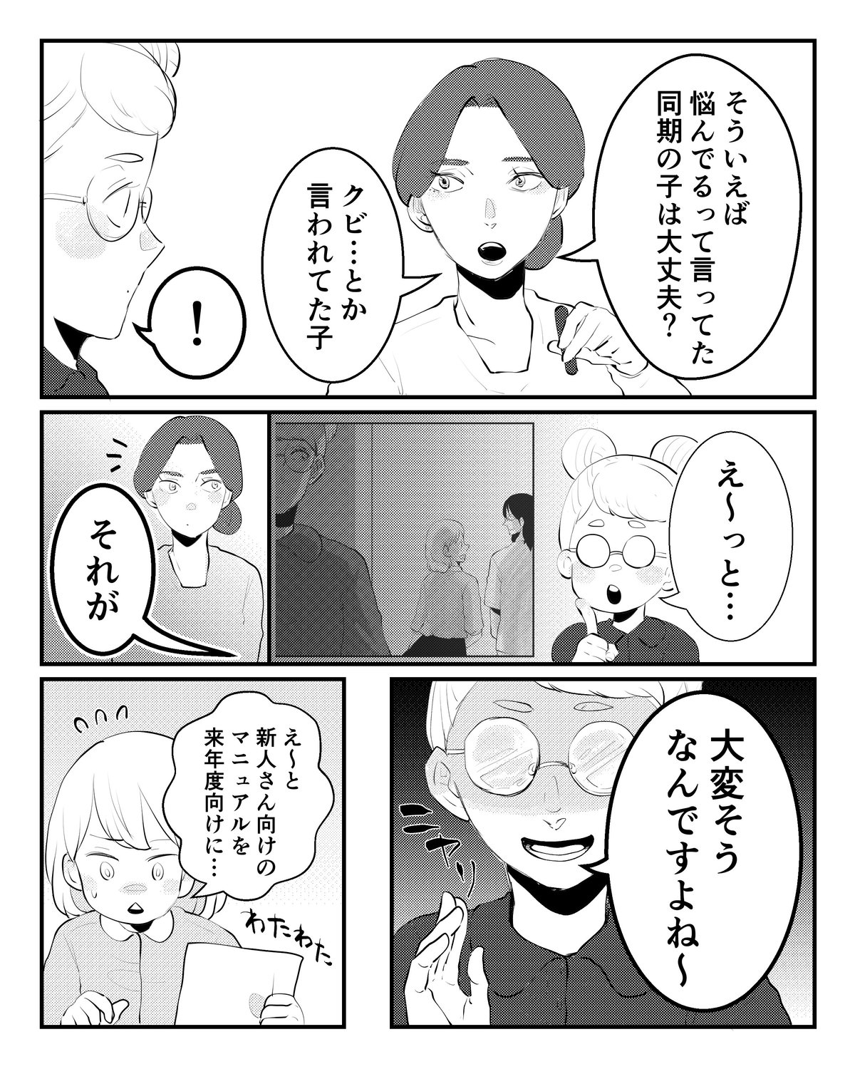 「へぇ〜…」要領よく仕事をこなす同期は心配しながら社内情報を収集する