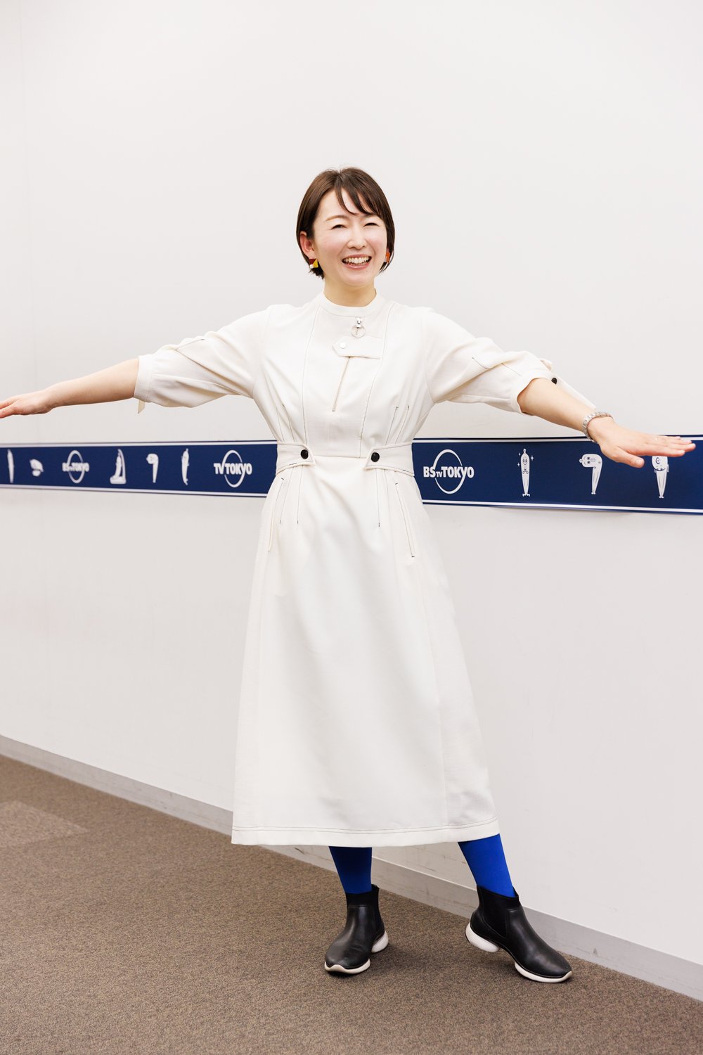 忙しい女性が参考にしたくなる、ワンピースに動きやすい靴のコーデが多い狩野さん