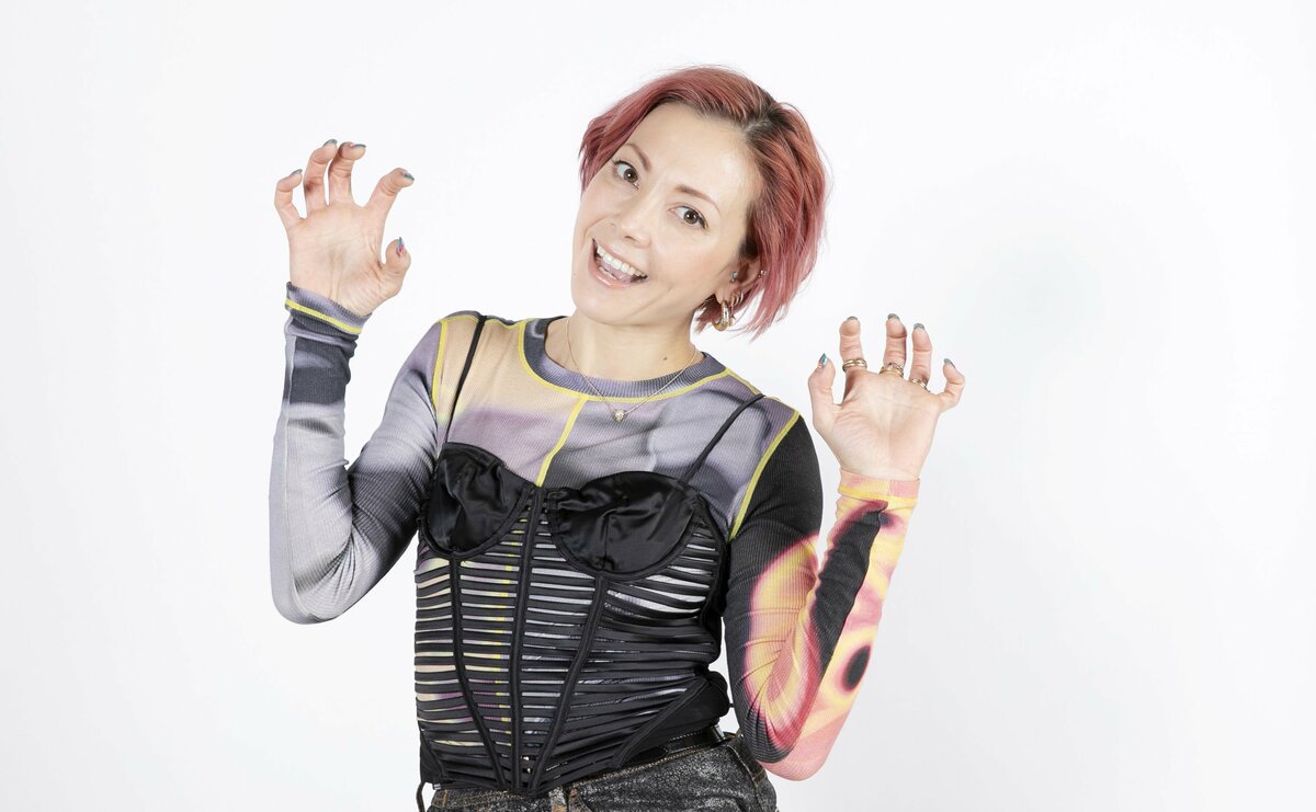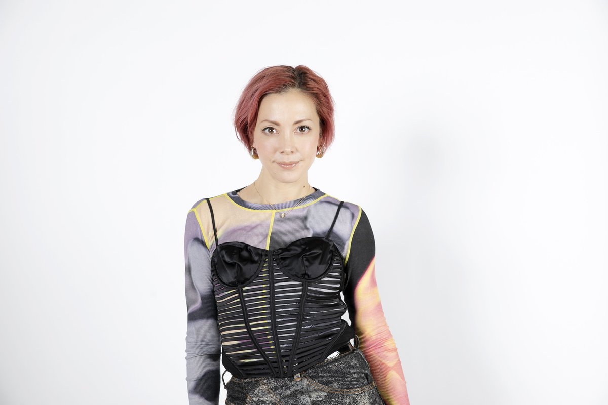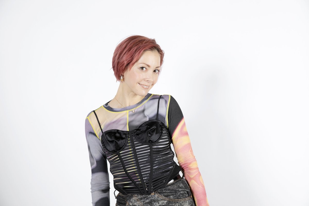 胸元のデザインが個性的な服を着た土屋アンナさん
