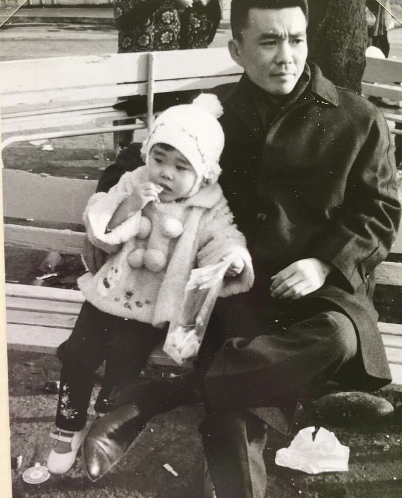 野沢直子さんの幼少期 お父さんの膝に抱かれて