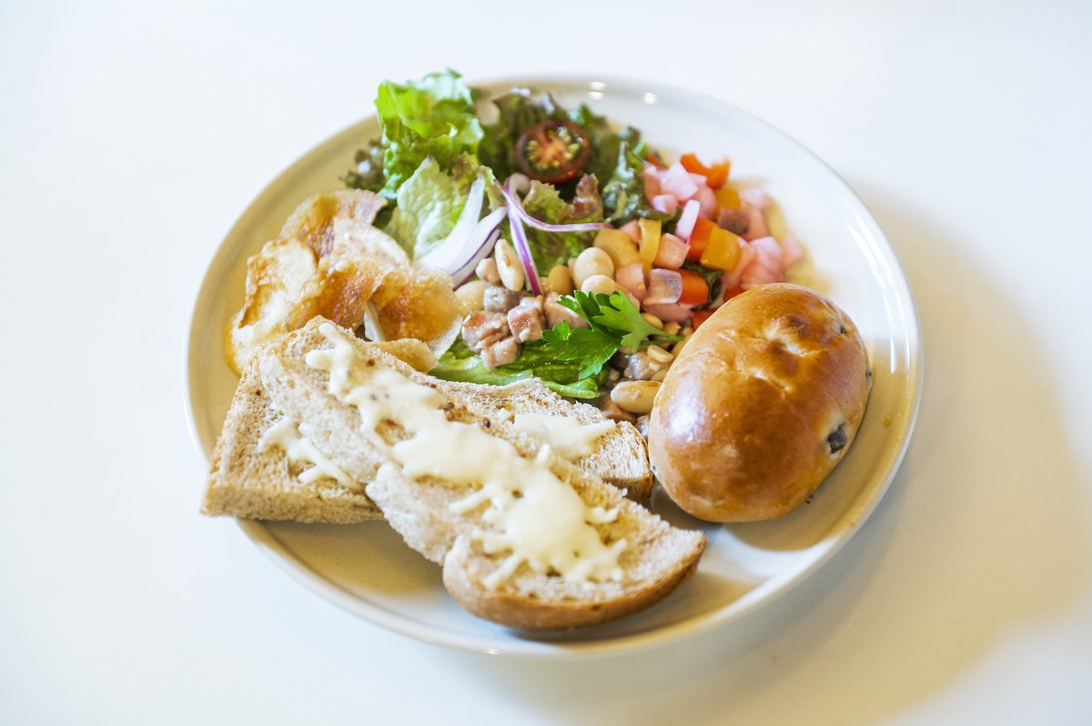 町のパン店で売れ残ってしまうパンを引き取って販売し、フードロスの削減に寄与する「夜パン」はカフェでも人気のコーナー
