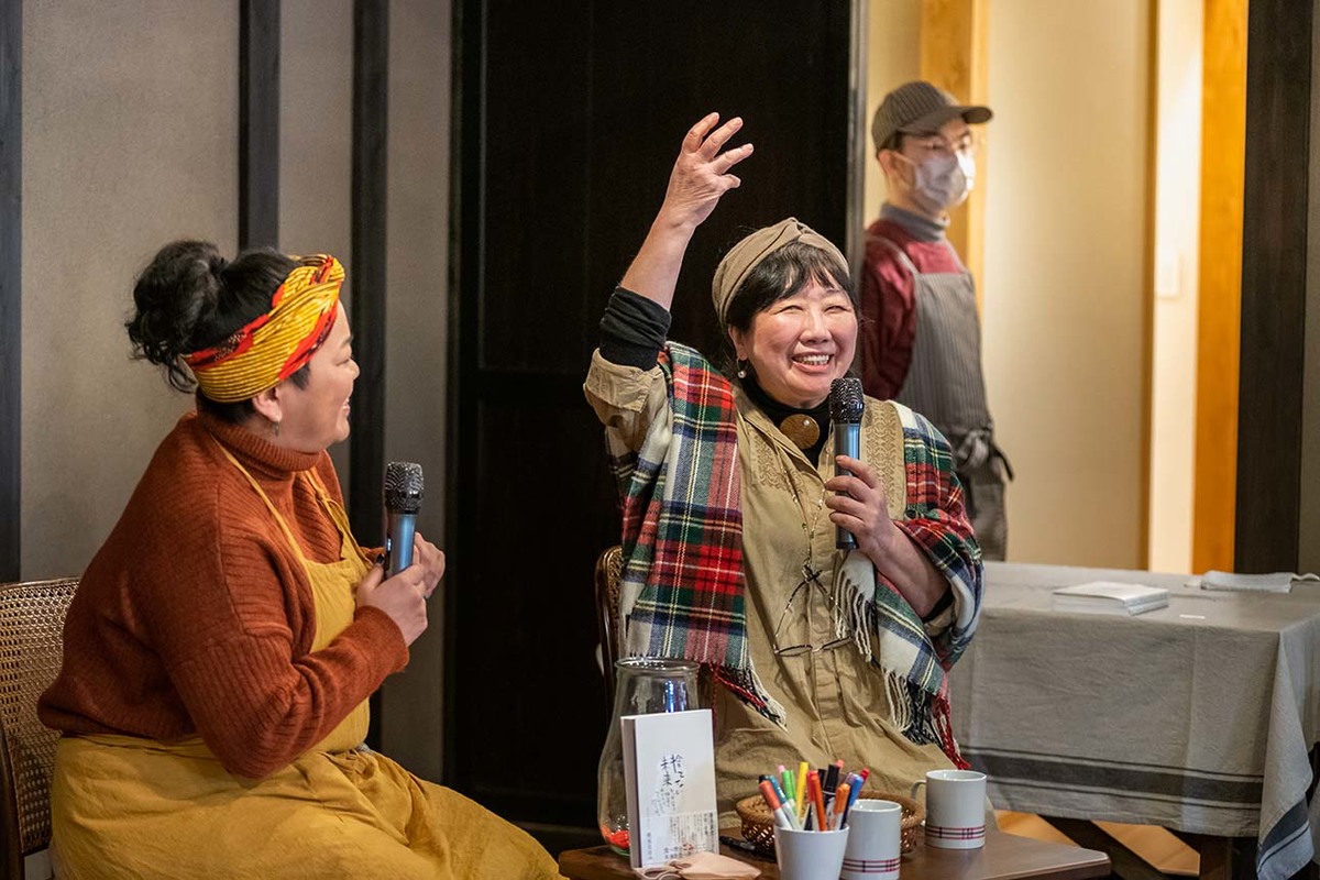 月に1回開かれる「夜パンB&Bカフェ」でにこやかに接客する枝元さん。エプロン姿がやっぱりお似合い