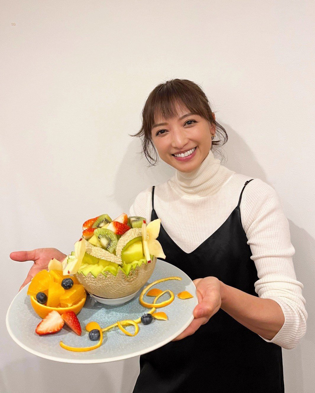 同じ事務所の皆藤愛子さんとフルーツサンドを前に
