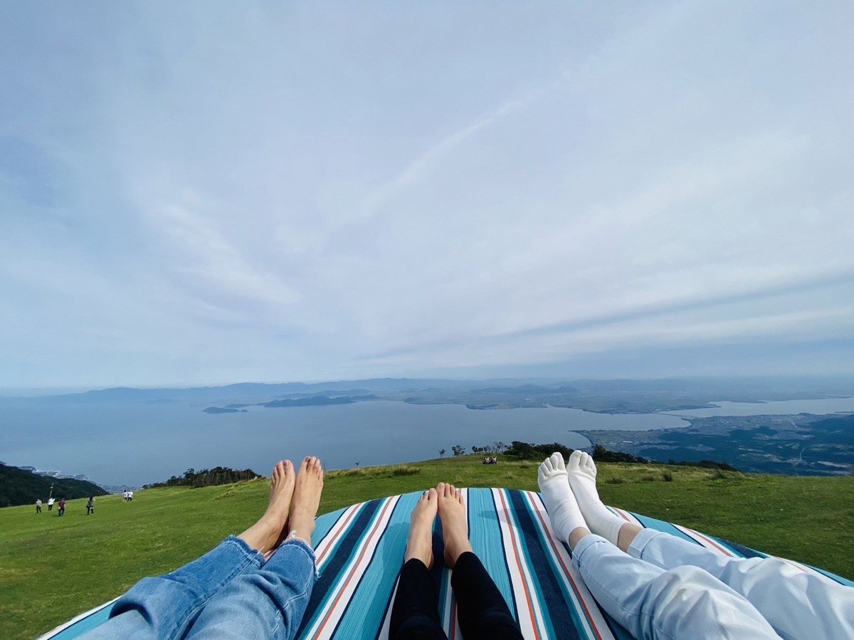 びわ湖テラスでは寝転んで空と琵琶湖、自然を満喫することができるそう