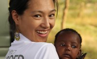 カンボジアの子どもたちに囲まれて満面の笑みの倉木さん
