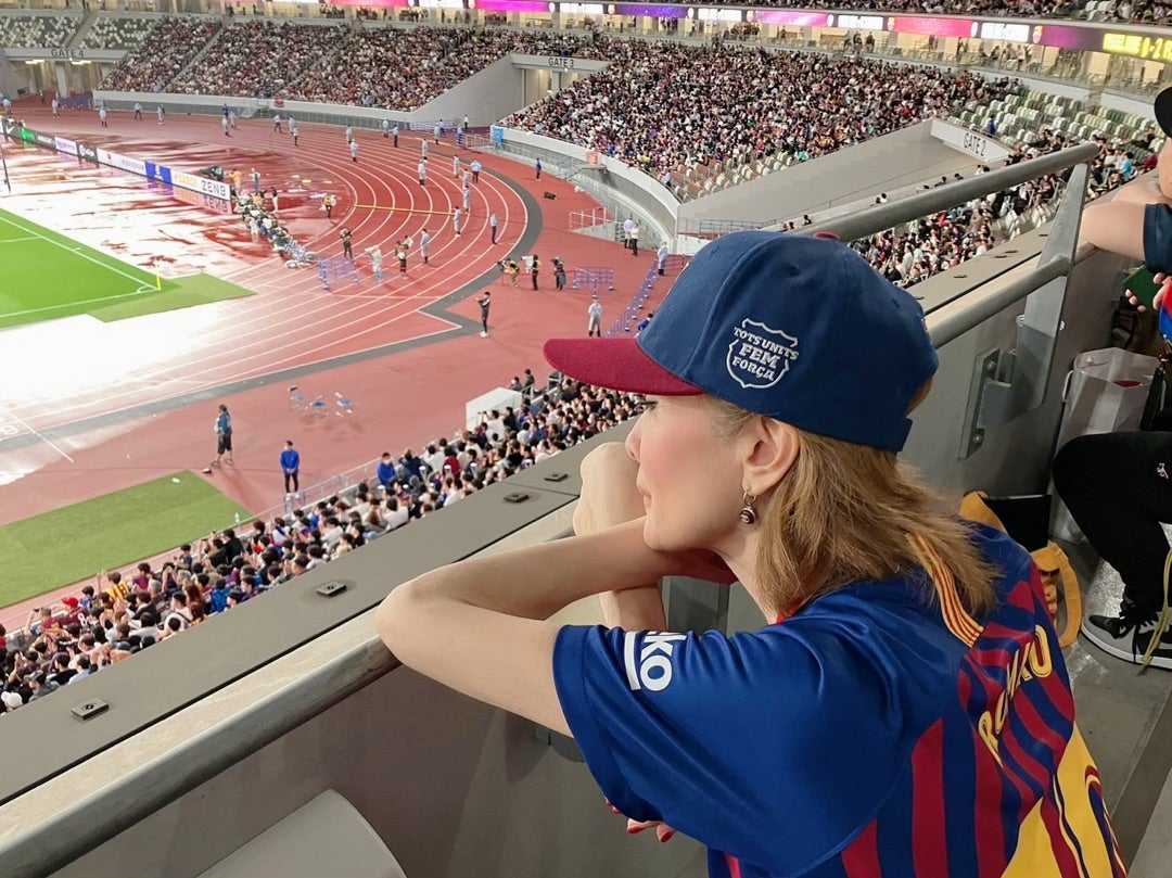 バルサのユニフォームの背中に「RUMIKO」の文字!試合を観戦するルミ子さん