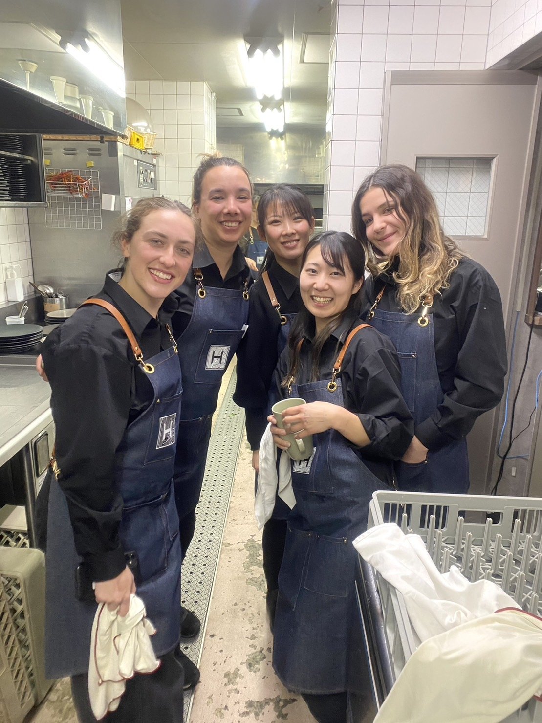 エプロン姿がお似合い!長野県のホテルで働いていた頃の同僚と(写真中央奥が福田さん)