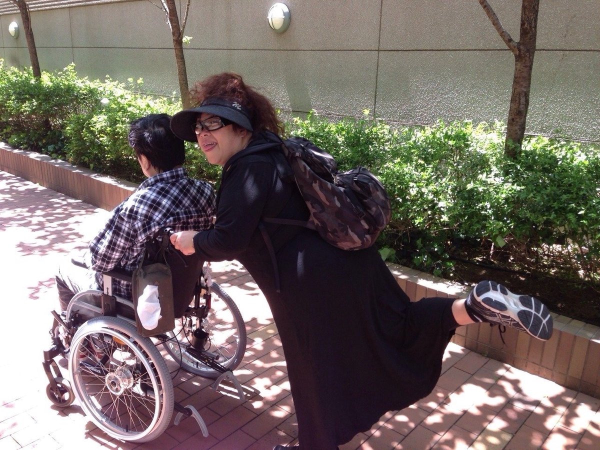 旦那さんとお散歩中、リラックスモードの森さん「ステップが軽やか」