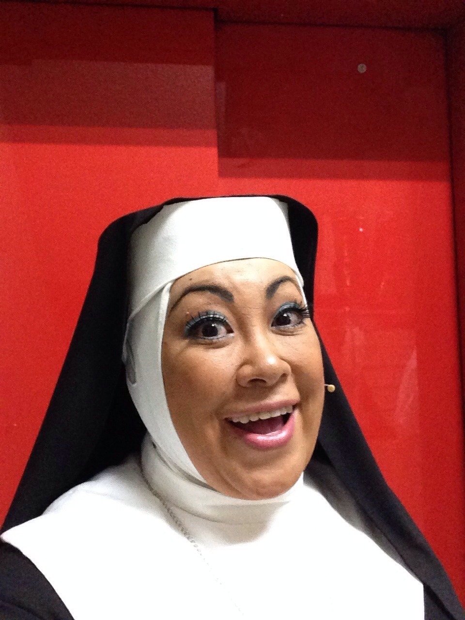 メイクもバッチリ決まっています!キラキラのシスターの衣装で