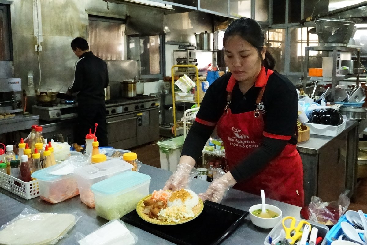 店の調理場に立つグェンさん。調味料などはベトナムから取り寄せており、本場の味を楽しむことができる