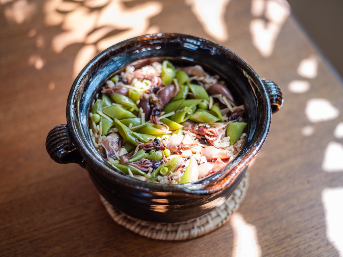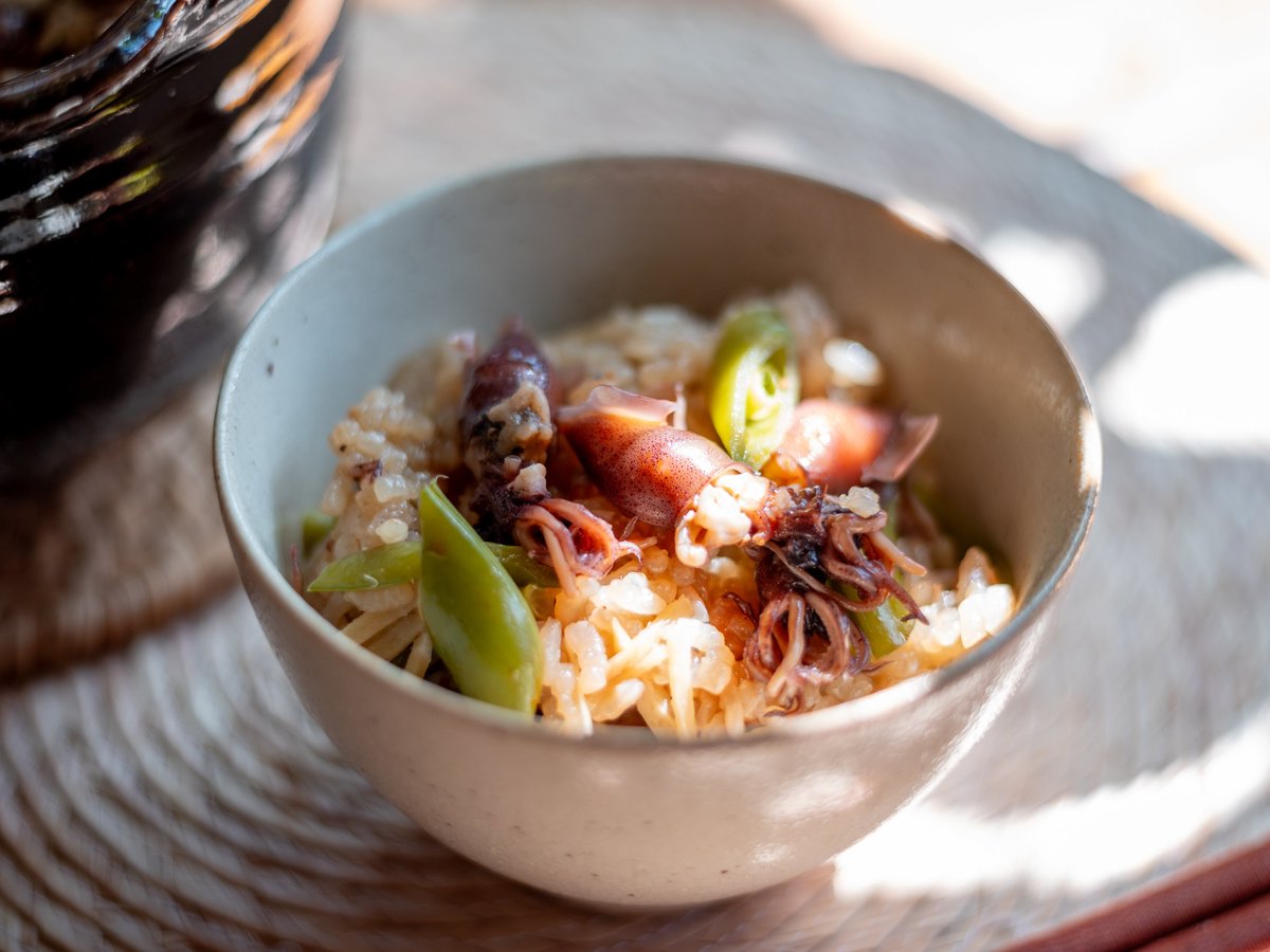 春の終わりに「ホタルイカとスナップエンドウの炊き込みご飯」