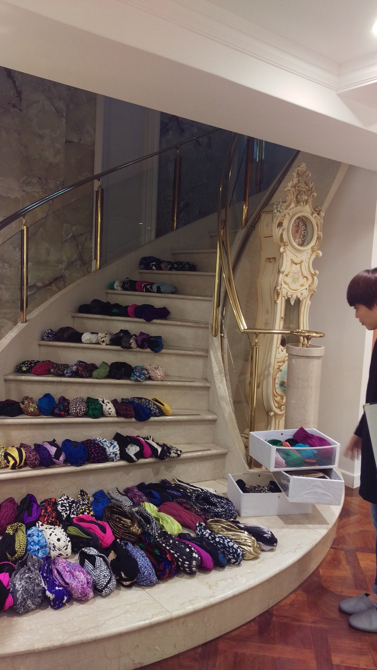 【写真あり】「圧巻!」桂由美さん所有のターバン150枚が並べた自宅の螺旋階段