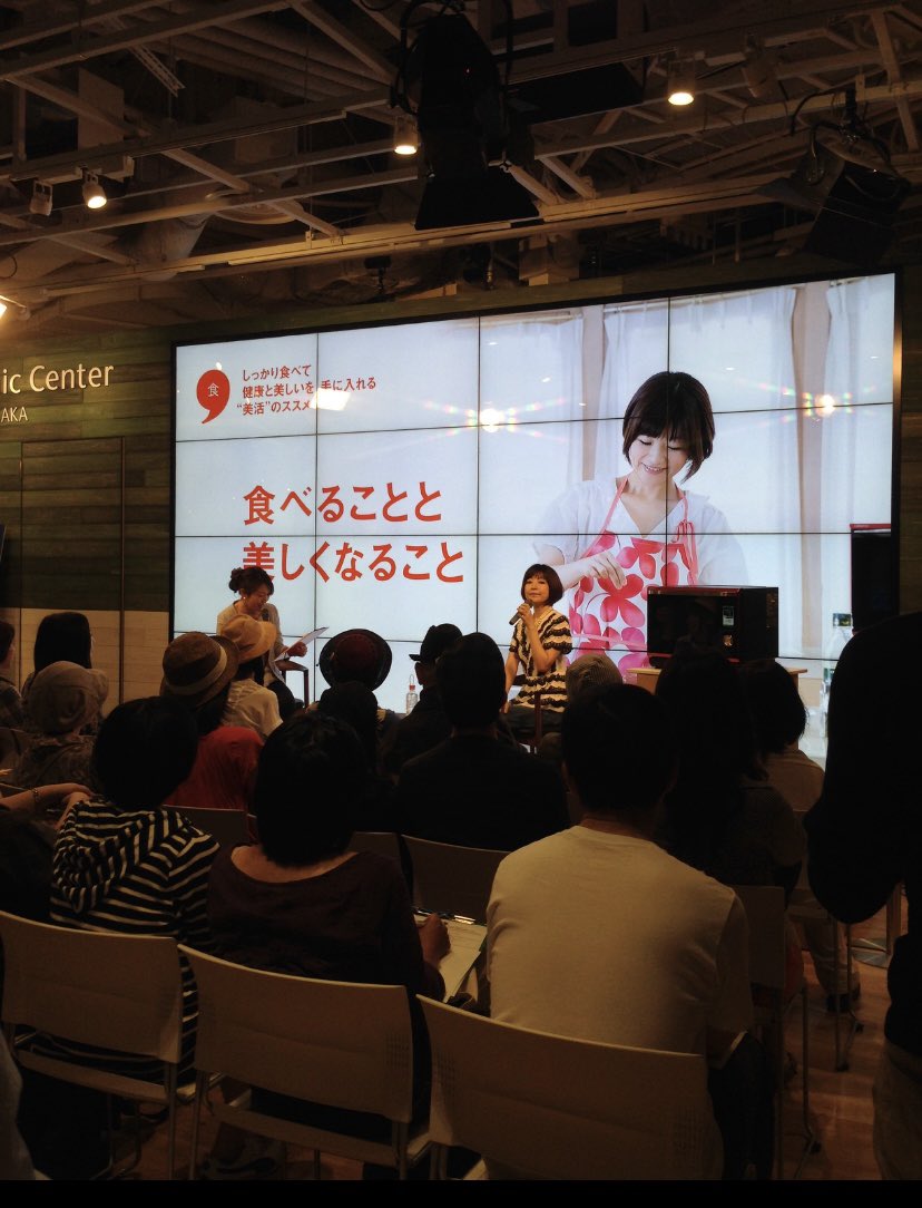 2014年、大阪にて食にまつわる講演を行う宮前さん